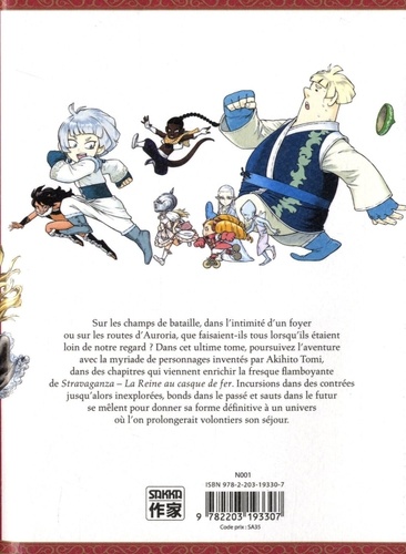 Sur les champs de bataille, dans l'intimité d'un foyer ou sur les routes d'Auroria, que faisaient-ils tous lorsqu'ils étaient loin de notre regard ? Dans cet ultime tome, poursuivez l'aventure avec la myriade de personnages inventés par Akihito Tomi, dans des chapitres qui viennent enrichir la fresque flamboyante de Stravaganza - La Reine au casque de fer. Incursions dans des contrées jusqu'alors inexplorées, bonds dans le passé et sauts dans le futur se mêlent pour donner sa forme définitive à un univers où l'on prolongerait volontiers son séjour.
