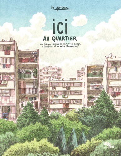 Ici au quartier est un reportage dessiné par Le Poisson. En septembre 2023, il débute une itinérance dessinée de deux ans dans deux quartiers de la périphérie limougeade : Beaubreuil et Val de l'Aurence Sud. Tous deux sont concernés par l'imminence de grands projets de renouvellement urbain, bouleversant ainsi le quotidien de ses habitants et de ses habitantes. Le Poisson serpente au fil des rencontres pour rapporter la parole de celles et ceux qui y habitent. C'est le récit d'un chantier au présent, sur les traces du passé de deux quartiers qui ont déjà un pied dans l'après.