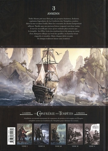 ARATHEON, UN MONDE FOISONNANT DE ROYAUMES, DE PIRATES ET DE MAGIES, OU L'EMPIRE COMPLOTE CONTRE "LA CONFRERIE DES TEMPETES" POUR DOMINER LES OCEANS. Trahi, blessé, jeté aux flots par ses propres hommes, Ankonn, capitaine légendaire de la Confrérie des Tempêtes, sombre dans la mer et dans l'oubli. Mais les courants du destin l'emportent ailleurs. Tandis que ses anciens frères voguent vers leur ruine, il survit, recueilli par ceux qu'on redoute plus encore que la tempête : les Elfes. Loin des mutineries et du sang, au coeur d'un shaeguna elfique au bord du gouffre, un homme brisé s'apprête à renaître. Mais chaque dette se paie. Et chaque trahison laisse une cicatrice.