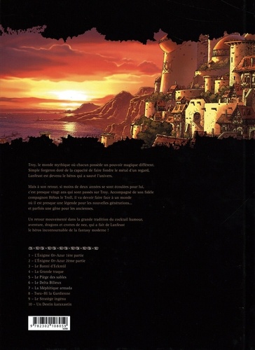L'heure est venue pour Lanfeust et son fidèle compagnon de route, le Troll Hébus, de rentrer au bercail ! Mais que leur réserve ce retour tant attendu sur Troy ? Pour prouver qu'il est innocent du meurtre de Nicolède, Lanfeust doit absolument retrouver Ryplëh, réfugié dans la Baie Pédestre. Accompagné de ses quatre épouses et d'Hébus, il se rend au village de pêcheurs, alors qu'à Eckmül, une étrange créature est en train de s'accaparer le pouvoir...