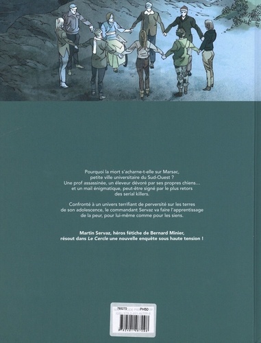 Pourquoi la mort s'acharne-t-elle sur Marsac, petite ville universitaire du Sud-Ouest ? Une prof assassinée, un éleveur dévoré par ses propres chiens... et un mail énigmatique, peut-être signé par le plus retors des serial killers. Confronté à un univers terrifiant de perversité sur les terres de son adolescence, le commandant Servez va faire l'apprentissage de la peur, pour lui-même comme pour les siens. Martin Servaz, héros fétiche de Bernard Minier, résout dans Le Cercle une nouvelle coquets, sous haute tension !