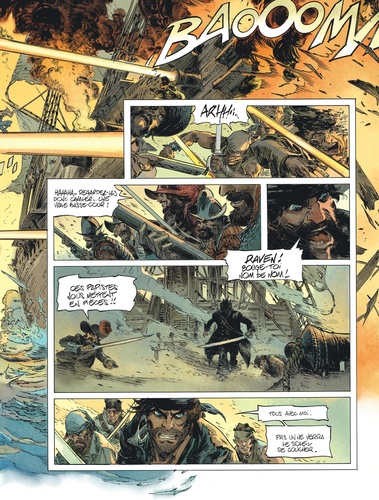 Raven de Mathieu Lauffray est une fresque de piraterie intense, portée par un héros audacieux et ambigu. Souvent fourbe, parfois honorable, on apprécie les manigances de Raven et sa façon de défier à répétition la capitaine Darksee, une adversaire redoutable et fascinante.