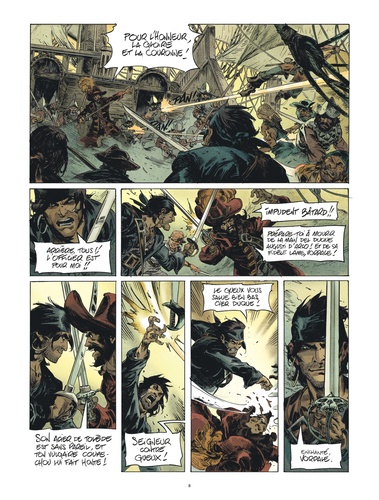 Si la série s’éloigne rapidement des batailles navales pour se concentrer sur une chasse au trésor terrestre, elle séduit par son souffle épique, ses personnages forts, sa tension constante et surtout l’éblouissant dessin de Lauffray, qui transforme chaque planche en fresque spectaculaire.