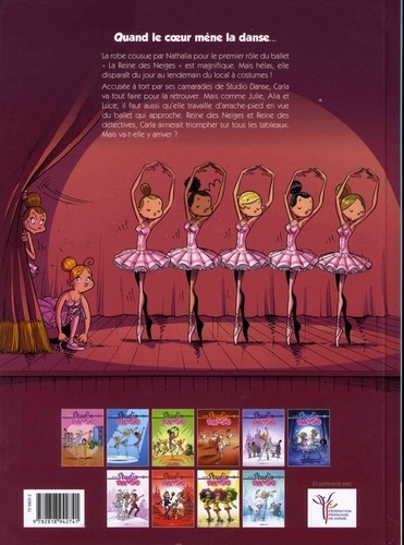 Quand le coeur mène la danse... La robe cousue par Nathalia pour le premier rôle du ballet "La Reine des Neiges" est magnifique. Mais hélas, elle disparaît du jour au lendemain du local à costumes ! Accusée à tort par ses camarades de Studio Danse, Carla va tout faire pour la retrouver. Trompée par de nombreuses fausses pistes, la jeune danseuse va avoir du mal à mener son enquête. Surtout que, comme Julie, Alia et Luce, il faut qu'elle travaille d'arrache-pied en vue du ballet qui approche. Reine des Neiges et Reine des détectives, Carla aimerait triompher sur tous les tableaux. Mais va-t-elle y arriver ?