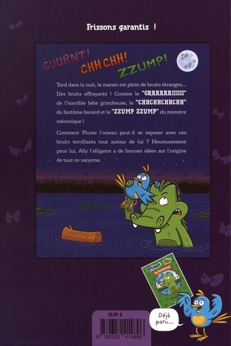 Tard dans la nuit, le marais est plein de bruits étranges... Des bruits effrayants ! Comme le "GRRRRRRIIIIII" de l'horrible bête grincheuse, le "CHHCHHCHHCHH" du fantôme bavard et le "ZZUMP ZZUMP" du monstre mécanique ! Comment Plume l'oiseau peut-il se reposer avec ces bruits terrifiants tout autour de lui ? Heureusement pour lui, Ally l'alligator a de bonnes idées sur l'origine de tout ce vacarme.
