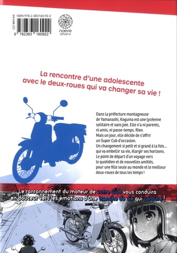 Dans la préfecture montagneuse de Yamanashi, Koguma est une lycéenne solitaire et sans joie. Elle n'a ni parents, ni amis, ni passe-temps. Rien. Mais un jour, elle décide de s'offrir un Super Cub d'occasion. Un changement si petit et si grand à la fois... qui va embellir sa vie, élargir ses horizons. Le point de départ d'un voyage vers le quotidien et de nouvelles amitiés, pour une fille seule au monde et le meilleur deux-roues de tous les temps !