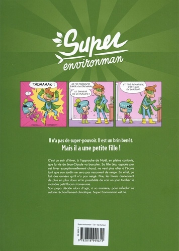 Il n'a pas de super pouvoir, pas un super costume. Il est un brin benêt. Mais il a une petite fille ! C'est un soir d'hiver, à l'approche de Noël, en pleine canicule, que la vie de Jean-Claude va basculer. Sa fille Léa, agacée par cet hiver exceptionnellement chaud, décide de ne plus aller à l'école tant que son jardin ne sera pas recouvert de neige. En effet, ça fait des années qu'il n'a pas neigé. Pire, les hivers deviennent de plus en plus doux et la possibilité de voir un jour tomber le moindre petit flocon, s'amenuise. Son papa décide alors d'agir, à sa manière, pour infléchir ce satané réchauffement climatique. Super Environman est né.