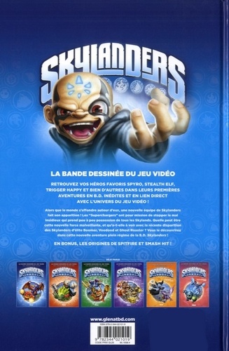 Retrouvez vos héros favoris Spyro, Stealth Elf, Trigger Happy et bien d'autres dans leurs premières aventures en BD inédites et en lien direct avec l'univers du jeu vidéo ! Alors que le monde s'effondre autour d'eux, une nouvelle équipe de Skylanders fait son apparition ! Les "Superchargers" ont pour mission de stopper le mal insidieux qui prend peu à peu possession de tous les Skylands. Quelle peut être cette nouvelle force malveillante, et qu'a-t-elle à voir avec la récente disparition des Skylanders d'élite Boomer, Voodood et Ghost Roaster ? Vous le découvrirez dans cette nouvelle aventure plein régime de la BD Skylanders !