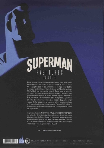 Pour venir à bout de l'Homme d'Acier, ses nombreux adversaires redoublent sans arrêt d'inventivité. M. Mxyzptlk décide de remonter le temps pour battre le héros avant même qu'il en devienne un ! Darkseid et son fils Kalibak parviennent à retenir Superman prisonnier du corps du photographe Jimmy Olsen ! Mais la plus grande menace pour le héros de Metropolis ne serait-elle pas tout simplement d'être remplacé ? L'arrivée en ville d'un nouveau justicier appelé Superior-Man risque de lui apporter la réponse plus rapidement que prévu car les habitants semblent l'avoir déjà adopté, lui dont les méthodes sont pourtant si éloignées de celles de Superman. Inspirés de la série TV Superman, l'ange de Metropolis, les épisodes de cette intégrale rendent un vibrant hommage à l'adaptation de Bruce Timm et Paul Dini, les deux auteurs également à l'origine de Batman, la série animée. Un autre maître incontesté oeuvre au scénario de cette aventure de l'homme d'acier, le génial Mark Millar.