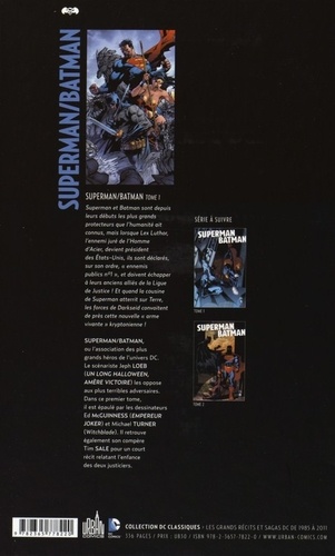 Superman et Batman sont depuis leurs débuts les plus grands protecteurs que l'humanité ait connus, mais lorsque Lex Luthor, l'ennemi juré de l'Homme d'Acier, devient président des Etats-Unis, ils sont déclarés, sur son ordre, "ennemis publics n°1", et doivent échapper à leurs anciens alliés de la Ligue de Justice ! Et quand la cousine de Superman atterrit sur Terre, les forces de Darkseid convoitent de près cette nouvelle "arme vivante" kryptonienne ! Superman/Batman, ou l'association des plus grands héros de l'univers DC. Le scénariste Jeph Loeb (Un Long Halloween, Amère Victoire) les oppose aux plus terribles adversaires. Dans ce premier tome, il est épaulé par les dessinateurs Ed McGuinness (Empereur Joker) et Michael Turner (Witchblade). Il retrouve également son compère Tim Sale pour un court récit relatant l'enfance des deux justiciers.