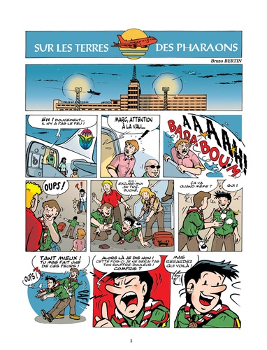 Vick et ses amis ont déniché un curieux objet - un étrange scarabée couvert de hiéroglyphes - avec lequel ils comptent bien participer au grand jeu du jamboree qui a lieu en Egypte cette année. Mais leur découverte semble avoir éveillé la convoitise de nombreuses personnes... Pourquoi le scarabée les intéresse-t-il ? Quel est donc son secret ? Bien décidés à le percer, Vick et ses amis débarquent au Caire accompagnés de leur fidèle Vicky. D'énigme en énigme, leur enquête va les mener d'un bout à l'autre de l'Egypte, sur les traces d'un savant disparu, sous l'œil indiscret d'inquiétants personnages... Sur les terres des pharaons : les " Deux Terres ".