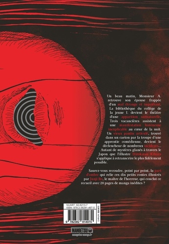 Un beau matin, Monsieur A. retrouve son épouse frappée d'un mal étrange et inquiétant. La bibliothèque du collège de la jeune I. devient le théâtre d'une apparition surnaturelle. Trois vacancières assistent à une manifestation lumineuse inexplicable au coeur de la nuit. Un vieux pantin articulé, trouvé dans un carton par la troupe d'une apprentie comédienne, devient le déclencheur de nombreux incidents... Autant de mystères glanés à travers le Japon que l'illustre Hirokatsu Kihara s'applique à retranscrire le plus fidèlement possible. Saurez-vous recoudre, point par point, la part d'ombre qui relie ces dix petits contes illustrés par Junji Ito, le maître de l'horreur, qui conclut ce recueil avec 20 pages de manga inédites ?