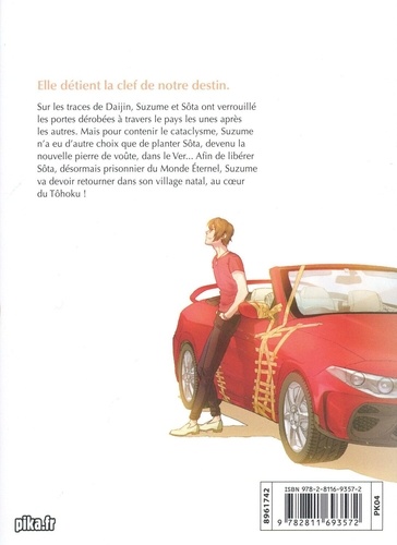 Elle détient la clef de notre destin. Sur les traces de Daijin, Suzume et Sôta ont verrouillé les portes dérobées à travers le pays les unes après les autres. Mais pour contenir le cataclysme, Suzume n'a eu d'autre choix que de planter Sôta, devenu la nouvelle pierre de voûte, dans le Ver... Afin de libérer Sôta, désormais prisonnier du Monde Eternel, Suzume va devoir retourner dans son village natal, au coeur du Tôhoku !