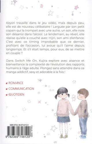 Koyori travaille dans le jeu vidéo, mais depuis peu, elle est de nouveau célibataire ! Larguée par son petit copain qui la trompait avec une autre, un soir, elle noie son désarroi dans l'alcool. Le lendemain, au réveil, elle réalise qu'elle a couché avec Hijiri, son ami d'enfance. C'est avec ce timing improbable que ce dernier, profitant de l'occasion, lui avoue qu'il l'aime depuis longtemps. Et s'il était temps, pour eux, de se mettre en couple ? Dans Switch Me On, Kujira explore avec aisance et bienveillance la complexité de l'évolution des rapports humains à l'âge adulte. Plongez sans attendre dans ce manga addictif, sexy et adorable à la fois !