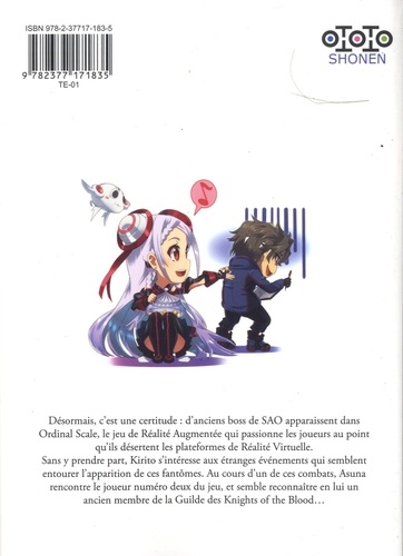 Désormais, c'est une certitude : d'anciens boss de SAO apparaissent dans Ordinal Scale, le jeu de Réalité Augmentée qui passionne les joueurs au point qu'ils désertent les plateformes de Réalité Virtuelle. Sans y prendre part, Kirito s'intéresse aux étranges événements qui semblent entourer l'apparition de ces fantômes. Au cours d'un de ces combats, Asuna rencontre le joueur numéro deux du jeu, et semble reconnaître en lui un ancien membre de la Guilde des Knights of the Blood...
