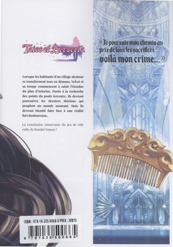 L'adaptation du jeu de rôle culte de Bandai Namco ! Lorsque les habitants d'un village alentour se transforment tous en démons, Velvet et sa troupe commencent à saisir l'étendue du plan d'Artorius. Partis à la recherche des points du pouls terrestre, ils devront poursuivre les derniers thérions qui peuplent un monde mourant. Mais ils devront bientôt faire face à une réalité fort douloureuse... La conclusion émouvante du jeu de rôle culte de Bandai Namco ! Série terminée en 3 tomes.