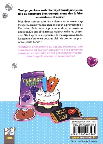 Tani, garçon franc mais discret, et Suzuki, une jeune fille au caractère bien trempé, n'ont rien à faire ensemble... et alors ? Nos deux tourtereaux franchissent un nouveau cap lorsque Suzuki invite Tani chez elle pour la première fois ! L'occasion rêvée de se rapprocher et de se découvrir un peu plus. De son côté, Yamada éclaircit enfin les choses avec Nishi, après un été ponctué de messages maladroits. L'automne s'annonce doux et plein de promesses pour notre petite bande !