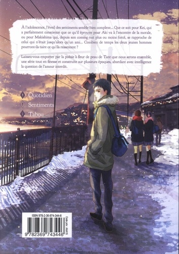 A l'adolescence, l'éveil des sentiments semble bien complexe... Que ce soit pour Aki, qui a parfaitement conscience que ce qu'il éprouve pour Alci va à l'encontre de la morale, ou pour Makishima qui, depuis son coming out plus ou moins forcé, se rapproche de celui qui n'était jusqu'alors qu'un ami... Combien de temps les deux jeunes hommes pourront-ils taire ce qu'ils ressentent ? Laissez-vous emporter par la poésie à fleur de peau de Tant que nous serons ensemble, une série tout en finesse et construite sur plusieurs époques, abordant avec intelligence la question de l'amour interdit.