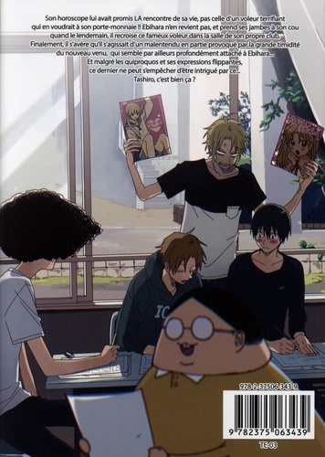 Son horoscope lui avait promis LA rencontre de sa vie, pas celle d'un voleur terrifiant qui en voudrait à son porte-monnaie !! Ebihara n'en revient pas, et prend ses jambes à son cou quand le lendemain, il recroise ce fameux voleur dans la salle de son propre club. Finalement, il s'avère qu'il s'agissait d'un malentendu en partie provoqué par la grande timidité du nouveau venu, qui semble par ailleurs profondément attaché à Ebihara... Et malgré les quiproquos et ses expressions flippantes, ce dernier ne peut s'empêcher d'être intrigué par ce... Tashiro, c'est bien ça ?