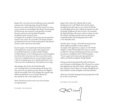 Depuis les années 50, Monsieur Hulot est un personnage qui s'est définitivement inscrit dans la mémoire populaire ; et son créateur, Jacques Tati, fait désormais partie du panthéon des cinéastes de renommée mondiale. L'oeuvre de Jacques Tati a inspiré et marqué des créateurs au-delà des époques et des genres. David Merveille est un de ceux-ci. Mieux, il est le seul illustrateur adoubé par les ayant-droits de Tati. Destinés à la jeunesse, ses livres ("Monsieur Hulot à la plage" , "Hello Monsieur Hulot" , "Le Jacquot de Monsieur Hulot" ...) sont dévorés par les parents. David Merveille permet à M. Hulot de parcourir des époques et des espaces nouveaux, tout en respectant l'univers initial. Le livre "Tati by Merveille" recueille le meilleur de son travail et, surtout, une multitude de dessins inédits.