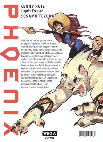 La Grande Guerre qui fit rage entre les espèces vivantes et les robots se solda par la victoire de ses derniers. Après des décennies de conflit émergeait ainsi l'Union Robotique, un gouvernement totalitaire dirigé par le puissant Atlas. Sous son régime, ceux jugés utiles reçoivent " un permis de vivre" délivré par le gouvernement. Pour les autres, c'est la mort. Une poignée de rebelles, survivants de l'ancienne Alliance Biologique, lui résiste. Au sein de cette résistance se forme bientôt une nouvelle équipe de champions : la Team Phoenix. Kenny Ruiz équilibre l'hommage rendu aux personnages de Tezuka et l'originalité créatrice d'un univers fictionnel où les faire tous évoluer : la naissance d'une oeuvre ambitieuse et pop culture.