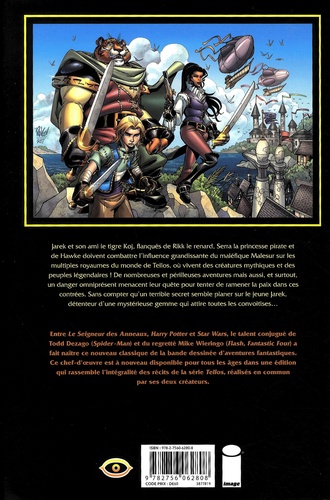 Jarek et son ami le tigre Koj, flanqués de Rikk le renard, Serra la princesse pirate et de Hawke, doivent combattre l'influence grandissante du maléfique Malesur sur les multiples royaumes du monde de Tellos, où vivent des créatures mythiques et des peuples légendaires ! Mais quel est le secret qui entoure ces personnages prisonniers de Tellos ? A vous de le découvrir dans cet ouvrage monumental.