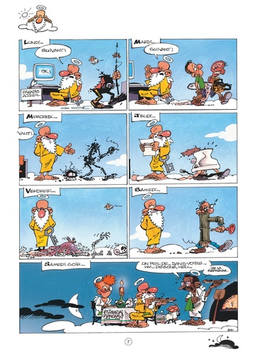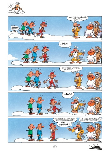 Faut pas croire, la vie de saint Pierre n'est pas si facile. Accueillir les défunts méritants au Paradis n'est que la partie émergée de l'iceberg ! Car notre ami doit aussi refouler et diriger (poliment mais fermement) les morts qui le méritent vers l'Enfer, rebooster Jésus-Christ (le fils du Patron...) et le détourner de ses jeux vidéo qui l'éloignent de sa mission, et puis aussi, en fin de journée, éviter de se prendre une raclée au billard contre Satan. La vie du gardien des clés du Paradis est donc un véritable enfer !