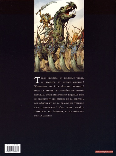 A la découverte de la série culte de l'héroïc-fantasy dans ce tome 16 de la série culte de l'héroïc-fantasy. Nouvelle Terre, nouvelles règles, nouveaux problèmes ! Terra Secunda réserve son lot de surprises au nouvel empereur absolu, Wismerhill. A commencer par la découverte d'une population autochtone : les Ophidiens, un peuple de reptiles guerriers qui n'entend pas se laisser envahir. L'exploration d'un monde hostile, la naissance d'un empire, de nouveaux combats en perspective : une véritable aventure épique portée par le dessin ambitieux de Fabrice Angleraud. Ce nouvel album des Chroniques de la Lune noire conclue l'aventure commencée dans le tome précédent.