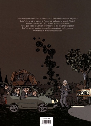 Affreux, sales, et très riches ! Dassault, Bernard Arnault, Pierre Gattaz, Laurence Parisot... tous les patrons du CAC 40 passent à la moulinette de l'humour dévastateur d'Isa ! Toute l'actualité économique donne à l'auteure de La Vie sentimentale de Laurence P. l'occasion de dénoncer, dans une série de portraits en mouvement mettant en scène des Rafale, des yachts et des Rolex, toute une caste de gens si riches, et pourtant humains, si humains... Commedia dell'arte, trahisons, guerres de successions... les pantins s'animent, s'agitent... parfois en pure perte ! Servis par un dessin clair et une narration toujours de qualité, voici un parfait manuel pour ne plus déprimer devant les indicateurs Bloomberg
