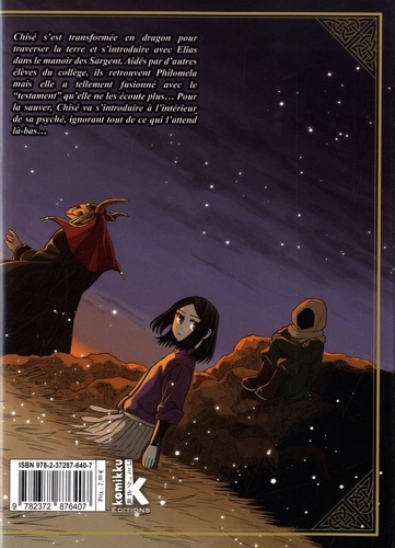 Découvrez un nouveau monde fantasy riche en pouvoirs, créatures et yôsei. Un manga succès qui a ensorcelé le Japon et prend brillament la relève de "Black Butler" et "Pandora Hearts". Adapté en animé ! Chisé s'est transformée en dragon pour traverser la terre et s'introduire avec Elias dans le manoir des Sargent. Aidés par d'autres élèves du collège, ils retrouvent Philomela mais elle a tellement fusionné avec le "testament' qu'elle ne les écoute plus... Pour la sauver, Chisé va s'introduire à l'intérieur de sa psyché, ignorant tout de ce qui l'attend là-bas...