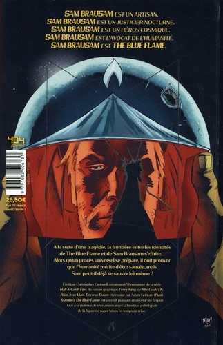 Sam Brausam est un héros cosmique. Sam Brausam est un justicier des rues du Milwaukee. Sam Brausam est un réparateur de chaudière. Sam Brausam est l'avocat de l'humanité. Sam Brausam est The Blue Flame. A la suite d'une horrible tragédie, les frontières de l'identité de Sam Brausam s'effritent et avant un procès universel, il doit prouver que l'humanité vaut la peine d'être sauvée. Pour ce faire, Sam Brausam doit d'abord se sauver lui-même mais, le peut-il ? The Blue Flame est un récit d'action cosmique et psychologique pour les fans et les lecteurs de Watchmen ou Strange Adventures . The Blue Flame nous narre l'histoire étrange d'un col-bleu ouvrier/vigilante/héros cosmique, qui doit défendre la Terre en donnant une réponse définitive à la question : " L'humanité mérite-t-elle d'être sauvé ? The Blue Flame est l'oeuvre de Christopher Cantwell l'auteur de Everything et showrunner/créateur de la série Halt & Catch Fire , accompagné par le dessinateur Adam Gorham ( Punk Mambo ). Il développe une critique touchante et puissante de l'Amérique, de ses démons et de ses héros tout en cherchant ce qui peut encore définir l'espoir dans un monde devenu si sombre.