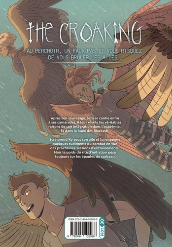 Au Perchoir, un faux pas et vous risquez de vous brûler les ailes... Après son sauvetage, Scra se confie enfin à ses camarades, et leur révèle les véritables raisons de son intégration dans l'académie... tout comme dans la nuée des Blackash. La vie à l'académie continue, Scra prend Ky sous son aile et lui enseigne quelques rudiments du combat en vue des prochaines sessions d'entraînements. Mais le poids du rite d'initiation pèse toujours sur les épaules du corbeau.