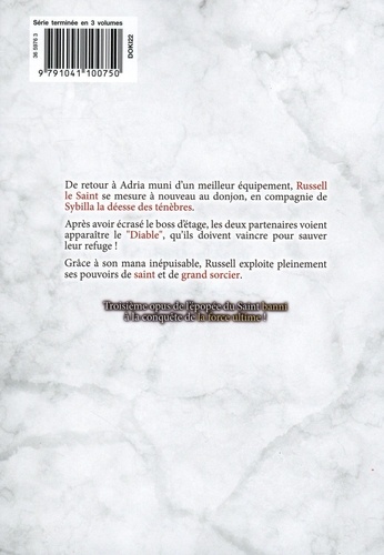 Faible, trahi et abandonné par son groupe, le guérisseur trouvera-t-il son salut dans la magie noire ? De retour à Adria muni d'un meilleur équipement, Russell le Saint se mesure à nouveau au donjon, en compagnie de Sybilla la déesse des ténèbres. Après avoir écrasé le boss d'étage, les deux partenaires voient apparaître le "Diable", qu'ils doivent vaincre pour sauver leur refuge ! Grâce à son mana inépuisable, Russell exploite pleinement ses pouvoirs de saint et de grand sorcier. Troisième opus de l'épopée du saint banni à la conquête de la force ultime !