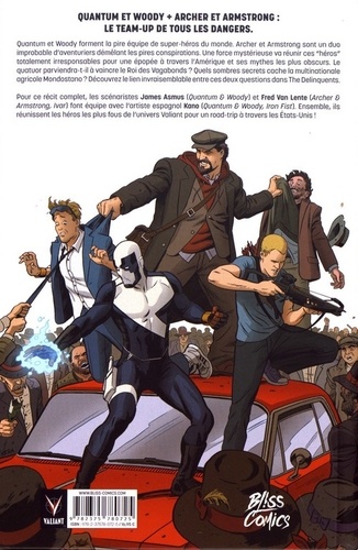 Quantum et Woody forment la pire équipe de super-héros du monde. Archer et Armstrong sont un duo improbable d'aventuriers démêlant les pires conspirations. Une force mystérieuse va réunir ces "héros" totalement irresponsables pour une épopée à travers l'Amérique et ses mythes les plus obscurs. Le quatuor parviendra-t-il à vaincre le Roi des Vagabonds ? Quels sombres secrets cache la multinationale agricole Mondostano ? Découvrez le lien invraisemblable entre ces deux questions dans The Delinquents. Pour ce récit complet, les scénaristes James Asmus (Quantum & Woody) et Fred Van Lente (Archer & Armstrong, Ivar) font équipe avec l'artiste espagnol Kano (Quantum & Woody, Iron Fist). Ensemble, ils réunissent les héros les plus fous de l'univers Valiant pour un road-trip à travers les Etats-Unis !