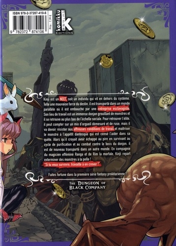 Kinji est un NEET, soit un individu qui vit en dehors du système. Telle une mauvaise farce du destin, il est transporté dans un monde parallèle où il est embauché par une entreprise esclavagiste. Son lieu de travail est un immense donjon grouillant de monstres et il se retrouve au plus bas de l'échelle sociale. Pour retrouver l'élite, il peut compter sur un mix d'orgueil démesuré et de ruse, mais il va devoir résister aux affreuses conditions de travail et maîtriser le monstre à l'appétit dantesque qui est censé l'aider dans sa quête. Alors qu'il croyait avoir échappé au pire en survivant au cycle de purification et au combat contre le boss du donjon, il est de nouveau transporté dans un autre monde. En compagnie du magicien efféminé Ranga et de Rim la morfale, Kinji repart exterminer des monstres à la pelle ! "Si tu veux survivre. travaille à en crever ! " Faites fortune dans la première série fantasy prolétarienne !