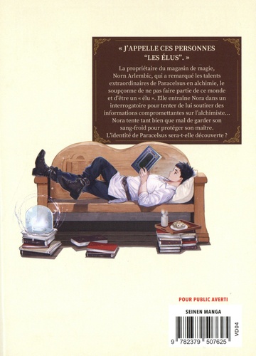 La propriétaire du magasin de magie Norn Arlembic, qui a remarqué les talents extraordinaires de Paracelsus en alchimie, bien au-delà des capacités d'un débutant, le soupçonne de ne pas faire partie de ce monde et d'être un "élu" . Elle entraîne Nora dans un interrogatoire pour tenter de lui soutirer des informations compromettantes sur l'alchimiste... Nora tente tant bien que mal de garder son sang-froid pour protéger son maître. L'identité de Paracelsus sera-t-elle découverte ?