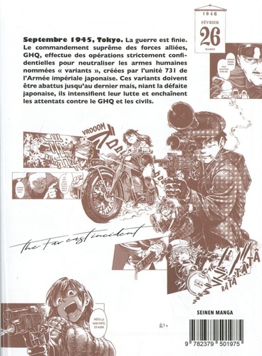 Septembre 1945, Tokyo. La guerre est finie. Le commandement suprême des forces alliées, GHQ, effectue des opérations strictement confidentielles pour neutraliser les armes humaines nommées " variants ", créées par l'unité 731 de l'Armée impériale japonaise. Ces variants doivent être abattus jusqu'au dernier mais, niant la défaite japonaise, ils intensifient leur lutte et enchaînent les attentats contre le GHQ et les civils. Kankurô Konoe et Saika parviennent à éliminer les variants les uns après les autres... jusqu'au 26 février 1946, où un événement imprévu frappe la capitale ! Un nouvel attentat fait 32 morts. Litchi Gotô, l'instigateur des attentats, s'avère être une vieille connaissance de Kankurô.