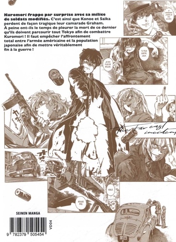 Kuromori, le leader des variants devenu immortel après les expérimentations de l'unité 731, plein de ressentiment envers son pays par lequel il estime avoir été trahi, complote pour livrer Tokyo aux flammes. Konoe et Saika vont tout mettre en oeuvre pour arrêter à temps ce soldat désespéré rendu fou par la guerre et dont l'unique raison de vivre est de se battre, sans distinguer davantage amis et ennemis. Le volume final de cette série située à Tokyo année 0, dont l'enjeu est la neutralisation de Kuromori, le dernier et le plus dangereux des variants.