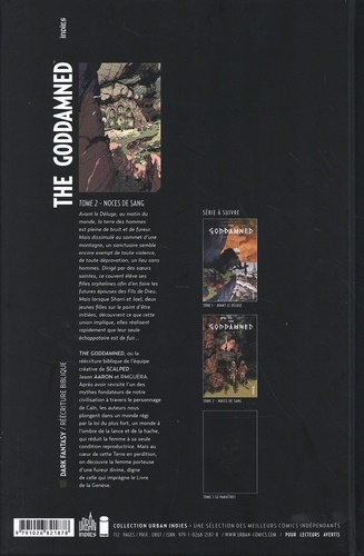 Tome 2 - Noces de sang Avant le Déluge, au matin du monde, la terre des hommes était pleine de bruit et de fureur. Mais dissimulé au sommet d'une montagne, un sanctuaire semble encore exempt de toute violence, de toute dépravation, un lieu sans hommes. Dirigé par des soeurs saintes, ce couvent élève ces filles orphelines afin d'en faire les futures épouses des Fils de Dieu. Mais lorsque Sharri et Jael, deux jeunes filles sur le point d'être initiées, découvrent ce que cette union implique, elles réalisent rapidement que leur seule échappatoire est de fuir... The goddamned, ou la réécriture biblique de l'équipe créative de Scalped : Jason Aaron et Rmguéra. Après avavoir revisité l'un des mythes fondateurs de notre civilisation à travers le personnage de Caïn, les auteurs nous plongent dans un monde régi par la loi du plus fort, un monde à l'ombre de la lance et de la hache qui réduit la femme à sa seule condition reproductrice. mais au coeur de cette Terre en perdition, on découvre la femme porteuse d'une fureur divine, digne de celle qui imprègne le Livre de la Genèse.