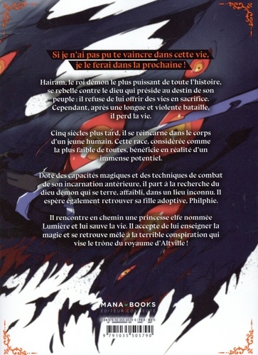 Si je n'ai pas pu te vaincre dans cette vie, je le ferai dans la prochaine ! Hairam, le roi démon le plus puissant de toute l'histoire, se rebelle contre le dieu qui préside au destin de son peuple : il refuse de lui offrir des vies en sacrifice. Cependant, après une longue et violente bataille, il perd la vie. Cinq siècles plus tard, il se réincarne dans le corps d'un jeune humain. Cette race, considérée comme la plus faible de toutes, bénéficie en réalité d'un immense potentiel. Doté des capacités magiques et des techniques de combat de son incarnation antérieure, il part à la recherche du dieu démon qui se terre, affaibli, dans un lieu inconnu. Il espère également retrouver sa fille adoptive, Philphie. Il rencontre en chemin une princesse elfe nommée Lumière et lui sauve la vie. Il accepte de lui enseigner la magie et se retrouve mêlé à la terrible conspiration qui vise le trône du royaume d'Altville !