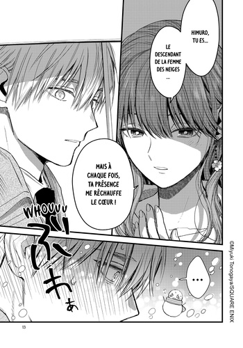 Himuro, descendant moderne d'une femme des neiges, est collègue avec la gentille et discrète Fuyutsuki. Lors d'un voyage au ski, Himuro réussit progressivement mais sûrement à se rapprocher de celle qu'il aime. Au fur et à mesure du temps passé ensemble, leurs souvenirs s'accumulent, tout comme leurs sentiments... The Ice Guy & The Cool Girl est un manga publié originellement sur le compte Twitter de Miyuki Tonogaya. Grâce à son dessin magnifique et à ses personnages charismatiques, la mangaka nous offre une romance aussi chaleureuse que mignonne.