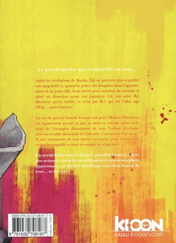 Le psychopathe qui sommeille en moi... Après les révélations de Kyoka, Eiji ne parvient plus à garder son sang-froid et, quand la police fait irruption dans l'appartement de la jeune fille, il est arrêté pour tentative de meurtre et placé en détention avant son jugement. Là, son amie Rei découvre qu'en réalité, ce n'est pas B-1 qui est l'alter ego d'Eiji... mais l'inverse ! La vie du garçon bascule lorsque son père, Makoto Hachinoi, est injustement accusé et que sa mère se suicide après avoir tenté de l'étrangler. Abandonné de tous, l'enfant développe alors un trouble dissociatif de l'identité : l'insouciant Eiji est né ! Il jure néanmoins de tout mettre en oeuvre pour retrouver le véritable coupable et ainsi accomplir sa vengeance...
