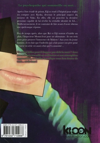 Le psychopathe qui sommeille en moi... Après les révélations de Kyoka, Eiji ne parvient plus à garder son sang-froid et, quand la police fait irruption dans l'appartement de la jeune fille, il est arrêté pour tentative de meurtre et placé en détention avant son jugement. Là, son amie Rei découvre qu'en réalité, ce n'est pas B-1 qui est l'alter ego d'Eiji... mais l'inverse ! Enfant, la vie du garçon bascule lorsque son père, Makoto Hachinoi, est injustement accusé et que sa mère se suicide après avoir tenté de l'étrangler. Abandonné de tous, il développe alors un trouble dissociatif de l'identité : l'insouciant Eiji est né ! Il jure néanmoins de tout mettre en oeuvre pour retrouver le véritable coupable et ainsi accomplir sa vengeance...