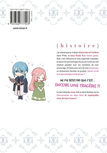 La future boss finale est aimée de son entourage ! J'ai réalisé que je m'étais réincarnée en l'infâme reine Pride, la boss finale d'un otome game. Avec mon influence et mes capacités cheatées, je sauve les personnages du jeu et construis une relation paisible avec les membres de mon entourage. Un beau jour, lors de mes treize ans, un événement familier se produit. Serait-ce dû à un personnage caché du jeu ? Ne me dites pas que c'est... encore une tragédie ? !