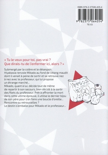Submergé par la colère et le désespoir, Hiyakawa renvoie Mikado au fond de l'étang maudit dont il venait à peine de sortir et se retrouve nez à nez avec le professeur, qui lui propose un étrange marché... Mikado, quant à lui, décide tout de même de repartir à son secours, bien décidé à le sortir des filets du professeur. Prêt à affronter la mort dans cette ultime épreuve, il utilise le dernier bijou de son père pour s'en faire une boucle d'oreille... Rencontre ou retrouvailles ? Le destin s'emballe pour Mikado et le professeur...