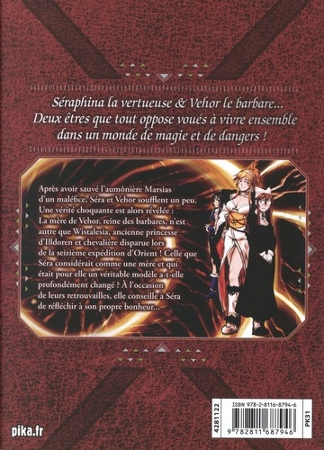 Après avoir sauvé l'aumônière Marsias d'un maléfice, Séra et Vehor soufflent un peu. Une vérité choquante est alors révélée : La mère de Vehor, reine des barbares, n'est autre que Wistalesia, ancienne princesse d'Illdoren et chevalière disparue lors de la seizième expédition d'Orient ! Celle que Sera considérait comme une mère et qui était pour elle un véritable modèle a t-elle profondément changé ? A l'occasion de leurs retrouvailles, elle conseille à Séra de réfléchir à son propre bonheur...