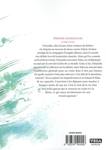 PERIODE MUROMACHI (1336-1573). Oniyasha, alias Zeami, futur créateur du théâtre nô, dispute un tournoi de danse contre Zôjirô, l'enfant prodige de la compagnie Dengaku Shinza, mais il connaît une défaite lors de la première manche. Alors qu'il se console au bord de la rivière, Oniyasha rencontre Toku, un vieillard pré- occupé par le sort des exclus de ce monde. Grâce à lui, Oniyasha approfondit sa réflexion sur la défaite, mais Toku est exécuté dans indifférence générale pour un crime dont il n'est pas l'auteur. De quelle manière Oniyasha relèvera-t-il le défi de la deuxième manche ? En acceptant ses imperfections et en faisant le bilan de ses capacités, il parvient à les dépasser pour toucher à l'essence même de son art. C'est le récit de la vie d'un tout jeune garçon qui se consacre au corps et à la danse, et qui saura révolutionner les arts vivants japonais !
