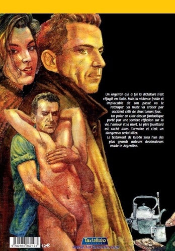 Un argentin qui a fui la dictature s'est réfugié en Italie. Mais la violence froide et implacable de son passé va le rattraper. Sa route va croiser par accident celle de deux tueurs fous. Un polar en clair-obscur fantastique porté par une sombre réflexion sur la vie, l'amour, la mort. Le père fouettard est caché dans l'armoire et c'est un dangereux serial killer. Le testament de Ruben Sosa, l'un des plus grands auteurs dessinateurs made in Argentine.