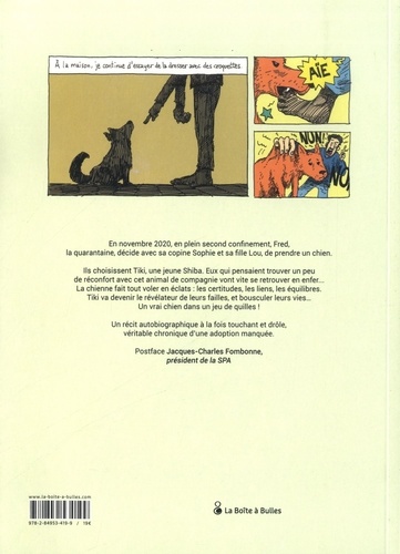 En novembre 2020, en plein second confinement, Fred, la quarantaine, décide avec sa copine Sophie et sa fille Lou, de prendre un chien. Ils choisissent Tiki, une jeune Shiba. Eux qui pensaient trouver un peu de réconfort avec cet animal de compagnie vont vite se retrouver en enfer... La chienne fait tout voler en éclats : les certitudes, les liens, les équilibres. Tiki va devenir le révélateur de leurs failles, et bousculer leurs vies... Un vrai chien dans un jeu de quilles !