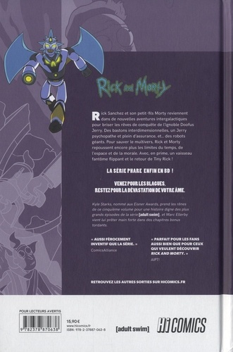 Un Jerry maître du multivers ? Jamais ! Rick Sanchez et son petit-fils Morty reviennent dans de nouvelles aventures intergalactiques pour briser les rêves de conquête de l'ignoble Doofus Jerry. Des bastons interdimensionnelles, un Jerry psychopathe et plein d'assurance, et des robots géants... Rick et Morty repoussent encore plus les limites du temps, de l'espace et de la morale. Avec, en prime, un vaisseau fantôme flippant et le retour de Tiny Rick ! La série phare enfin en BD ! Venez pour les blagues, restez pour la dévastation de votre âme.
